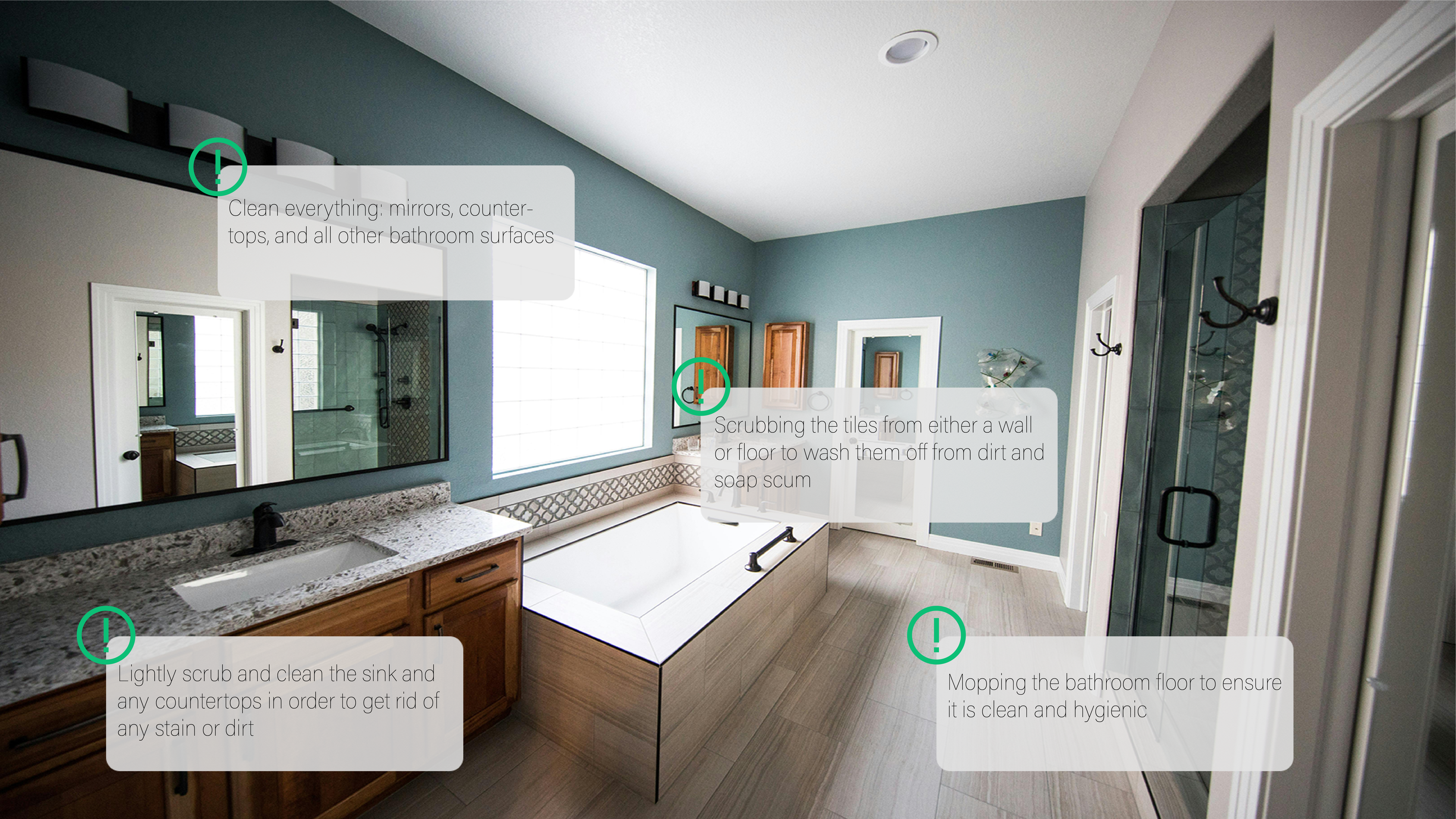 What’s Included in Cleaning? Take a look at the pictures below to see exactly what’s included in the cleaning for each room—we’ve broken it down nice and simple for you. And if you’re wondering what’s included in painting… well, it’s painting! (Walls, ceilings, and maybe a little magic if you ask nicely.)